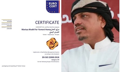 مرتع النحل للعسل اليمني يحصل على شهادة الأيزو الدولية ISO 22000